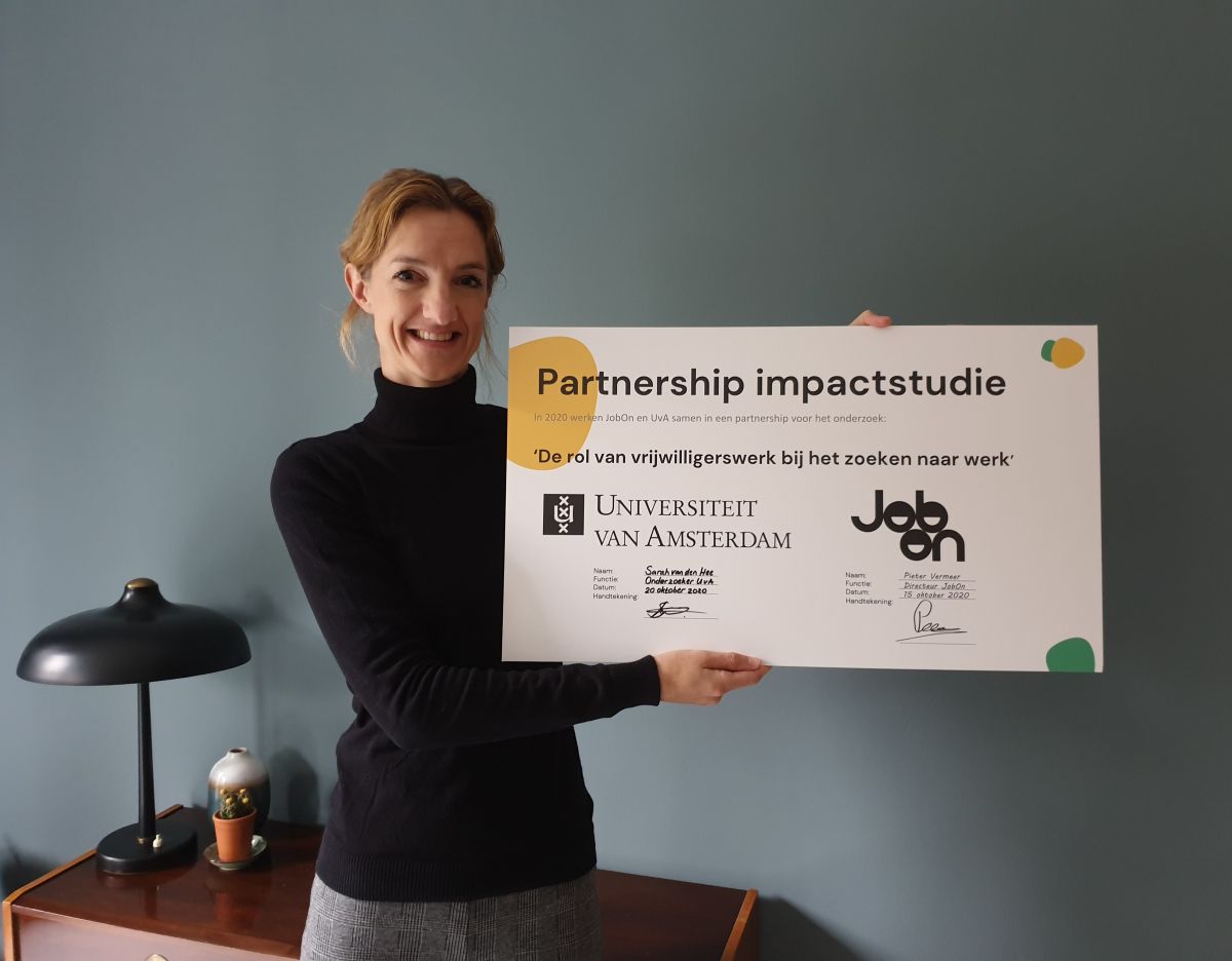 Mooi nieuws! JobOn is een samenwerking aangegaan met de Universiteit Amsterdam en het Kurt Lewin Instituut, waarin samengewerkt wordt aan een onderzoek naar de rol van vrijwilligerswerk bij het zoeken naar werk. Wij vinden het natuurlijk fantastisch dat wij hier als maatschappelijke organisatie, samen met onze vrijwilligers, aan mogen bijdragen. We gaan in gesprek met de betrokken personen bij dit belangrijke onderzoek.